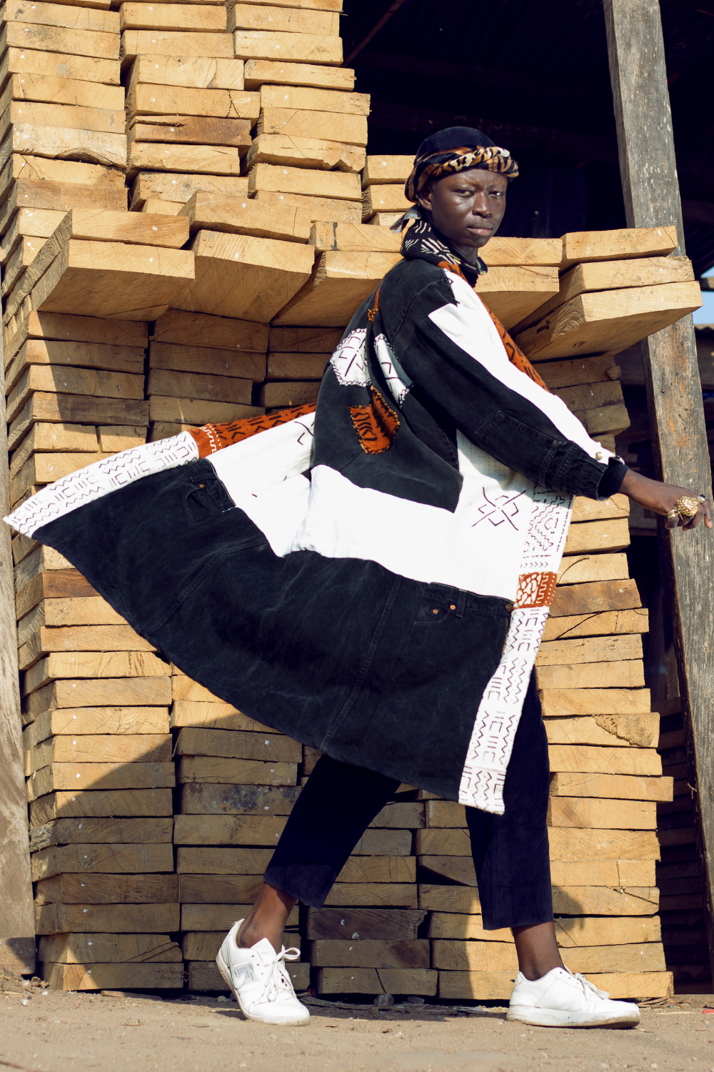 We source everything locally from limited, second hand materials to create non seasonal items. Each garment we create is unique and carefully crafted from discarded materials combined with local fabrics, using traditional techniques.